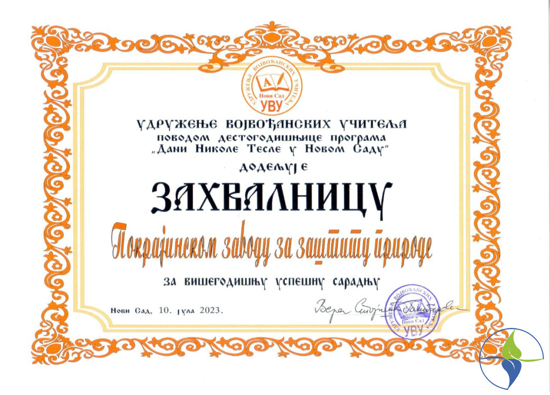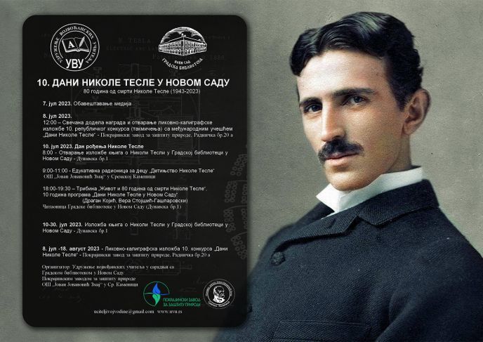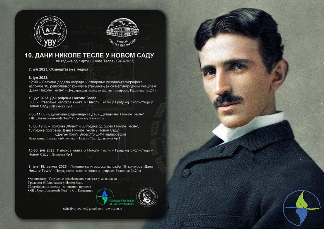 U okviru manifestacije „Dani Nikole Tesle" u Pokrajinskom zavodu za zaštitu prirode je otvorena 10. jubilarna likovno-kaligrafska izložba dece Srbije. Izložba je otvorena u subotu 8.jula 2023.godine u 12 časova, a organizator izložbe je Udruženje vojvođanskih učitelja. Tema izložbe se odnosi na život i delo našeg proslavljenog naučnika Nikole Tesle, a organizuje se povodom obeležavanja njegovog rođendana (10. jul 1856. Smiljan).