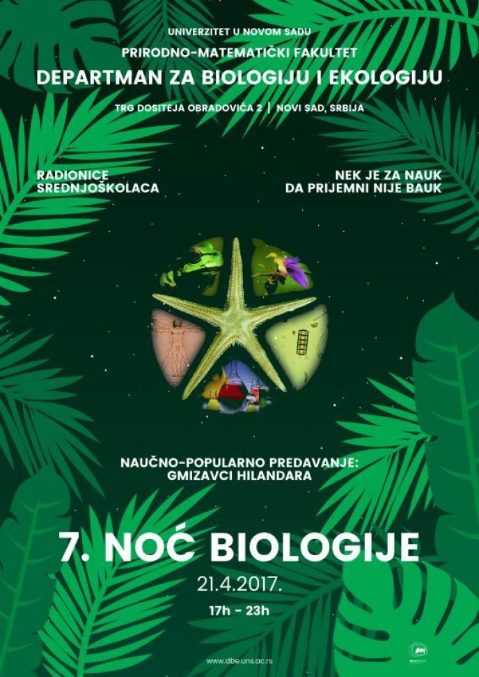 Više detalja: http://www.dbe.uns.ac.rs/#noĆ_biologije_2017