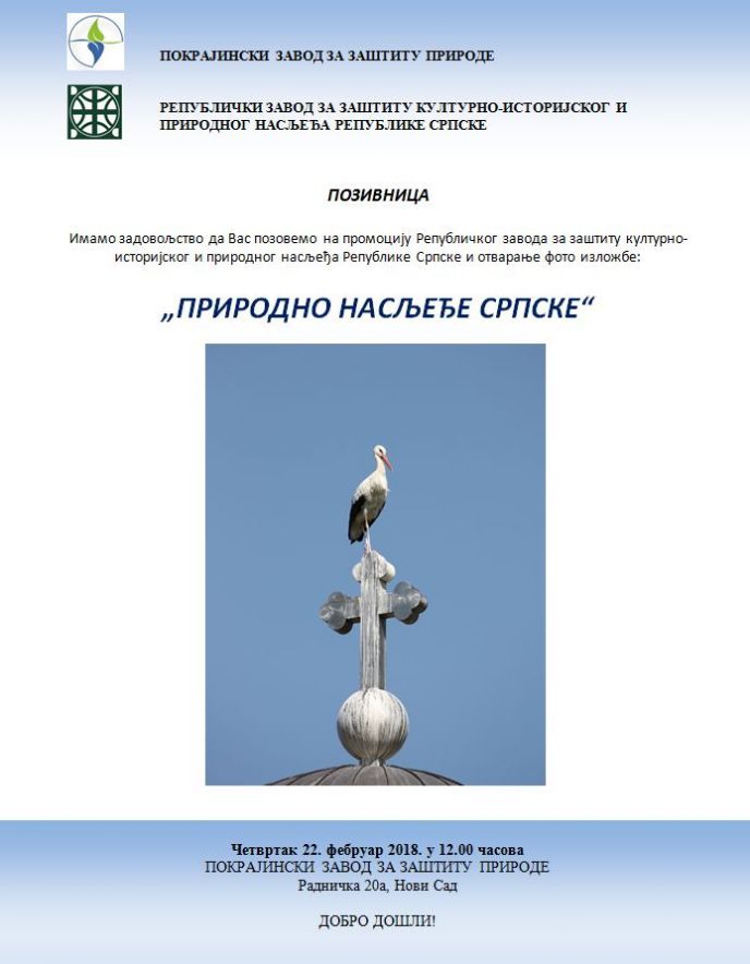 Imamo zadovoljstvo da Vas pozovemo na promociju Republičkog zavoda za zaštitu kulturno-istorijskog i prirodnog nasljeđa Republike Srpske i otvaranje foto izložbe: