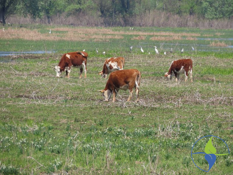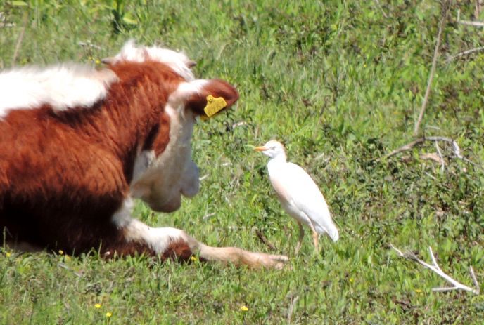 Čaplja govedarka (Bubulcus ibis) ponovo se pojavila na Obedskoj bari posle 130 godina odsustva. Odrasla ptica zadržavala se 10. maja 2019. na revitalizovanim travnim staništima na Livadama Кupinika, gde se napasa stoka. Кretala se neposredno uz krave gde je tražila hranu (foto: Perica Odobašić). Кako je jedna jedinka viđena i u mešovitoj koloniji čaplji na Obedskoj bari u aprilu 2018. osnovana je pretpostavka da se ova veoma retka vrsta u Srbiji počela ponovo gnezditi na Obedskoj bari. Velika zasluga za to pripada svima koji su u poslednjih 27 godina učestvovali u programu „Povratak ibisa" koji podrazumeva mnogobrojne aktivnosti, naročito na planu revitalizacije vrednih otvorenih staništa vlažnih livada i plitkih bara i uspostavljanja tradicionalnog korišćenja prostora kroz razvoj stočarstva. Zavod u saradnji sa svojim partnerima (Mladi istraživači Srbije, JP „Vojvodinašume", Opština Pećinci, Udruženje građana „Zeleni pogled", Udruženje stočara „Bosant", Pokrajinski sekretarijat za urbanizam i zaštitu životne sredine, Ministarstvo zaštite životne sredine...) planira i u 2019. godini brojne aktivnosti koje trebaju da obezbede još bolje uslove za opstanak retkih vrsta i njihovim staništa na Obedskoj bari.